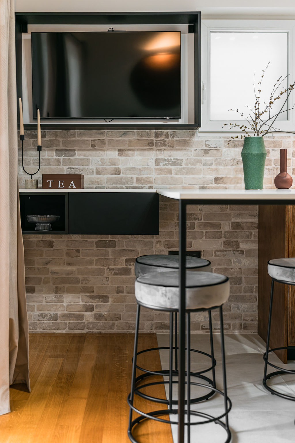 A space where the heritage of the Mediterranean meets modern luxury. An emerald sofa and brick details bring character, while the wall in the bedroom acts like an artistic canvas. The terrace with rustic elements recalls scenes from Italian villas, while the industrial-style bathroom offers a contemporary contrast. The Heritage Suite is perfect for those who value aesthetics, warmth, and the uniqueness of space.